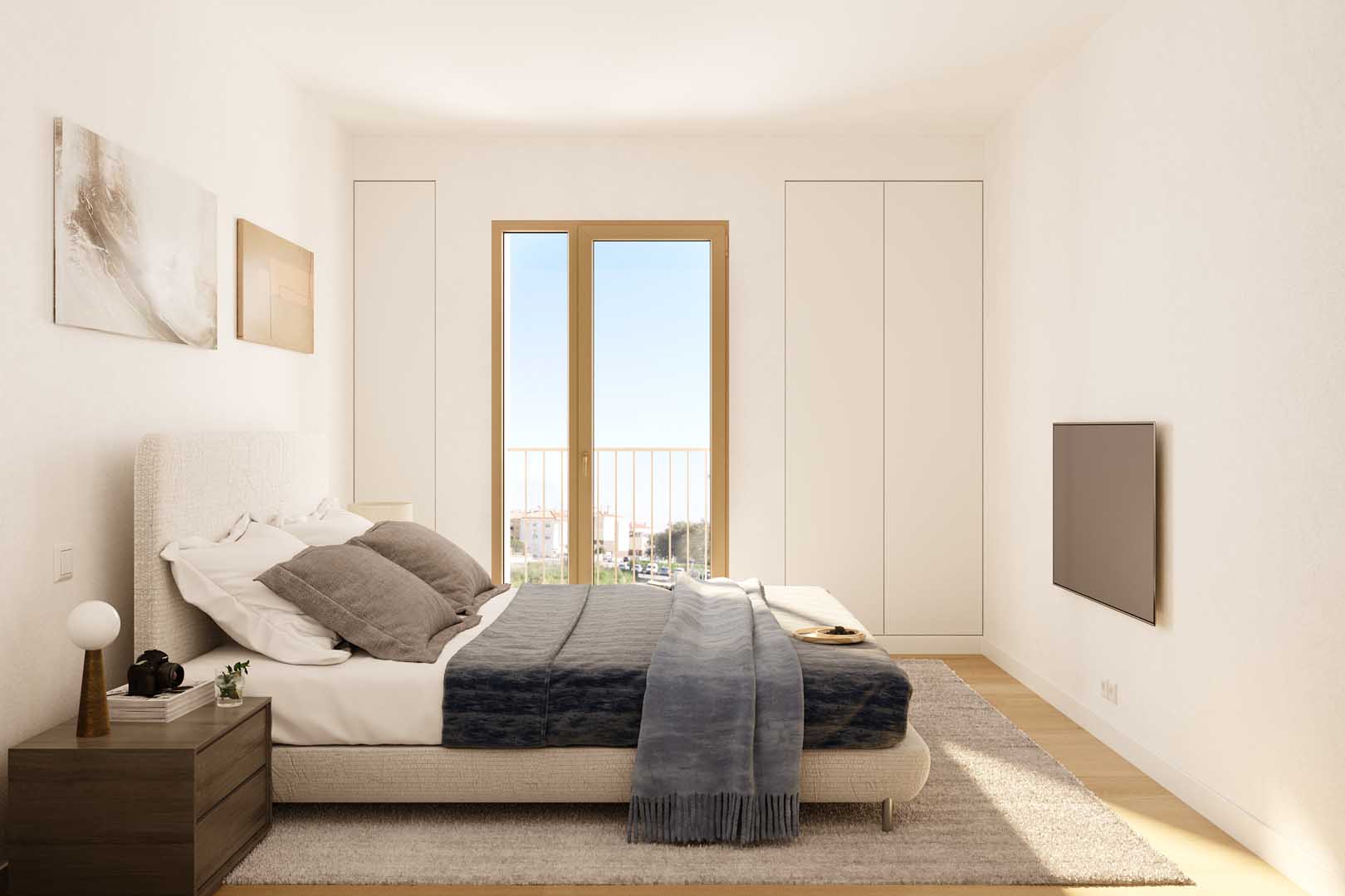 Os apartamentos T2 do Nearby Lagoas foram desenhados para privilegiar a luz e a harmonia dos espaços.